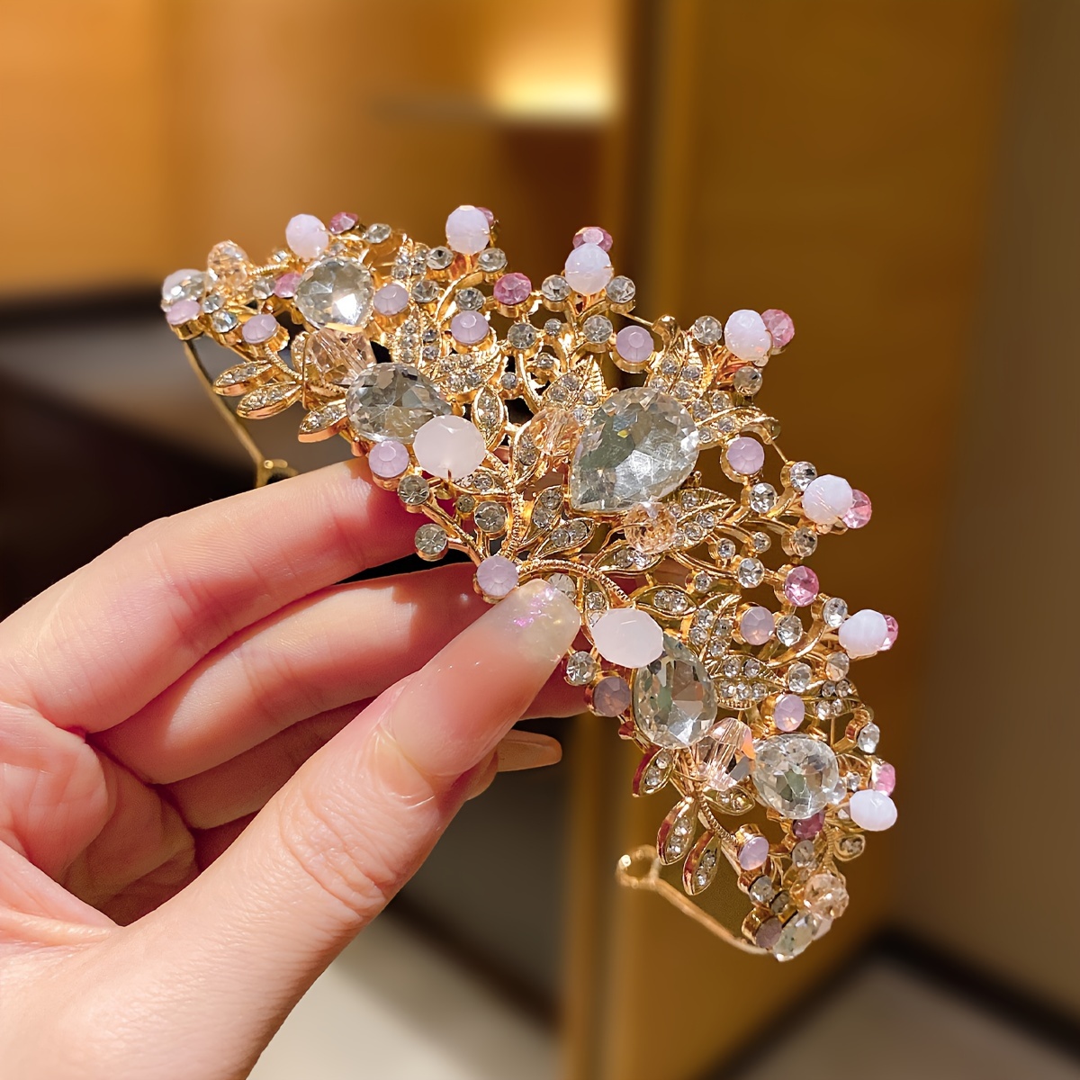 1pc Alloy Rhinestone Big Crown Hair Hoop, Girls Performance Princess Birthday Hair Accessories