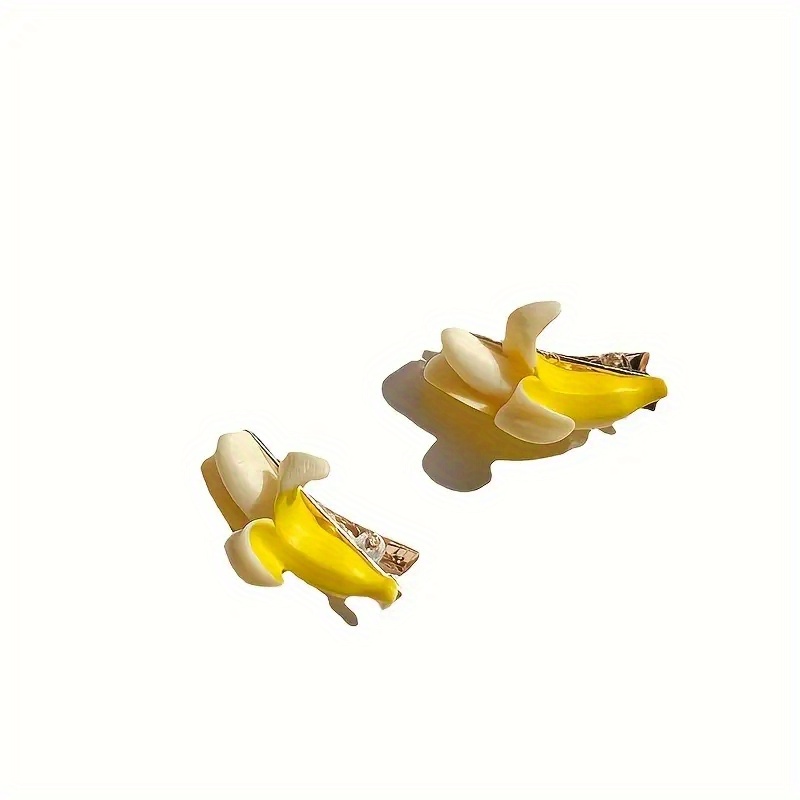 2 PCS PVC Banana Shaped Hair Clips - Cute Cartoon Style Yellow Fruit Hair Accessories, Suitable for Ages 14 And Up - Single Piece