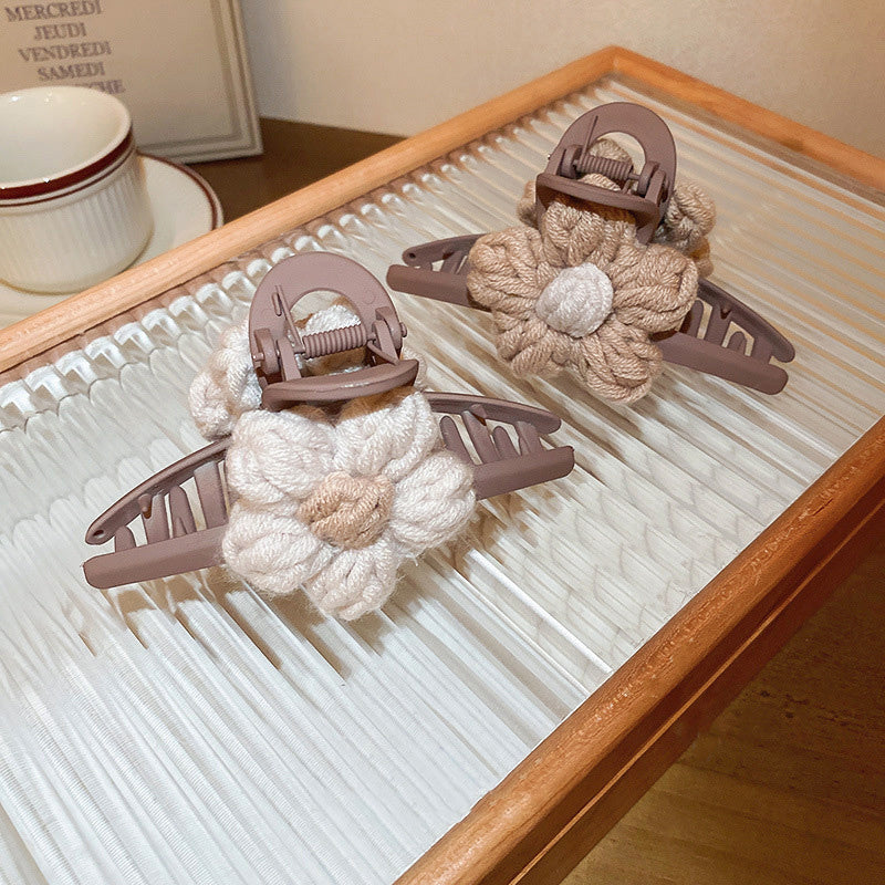 2pcs Knitted Floral Hair Claw Clip French Strong Hold Grip Hair Jaw Clip For Thick Hair Accessories