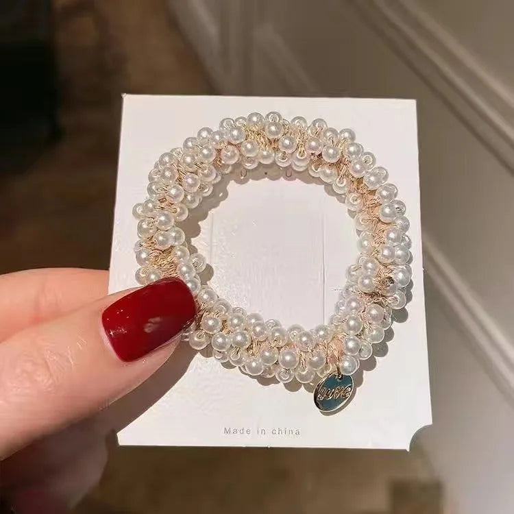 3pcs/set Crystal Pearl Beads Elastic Bands Scrunchies Hair Accessories Women Ponytail Holder Headwear