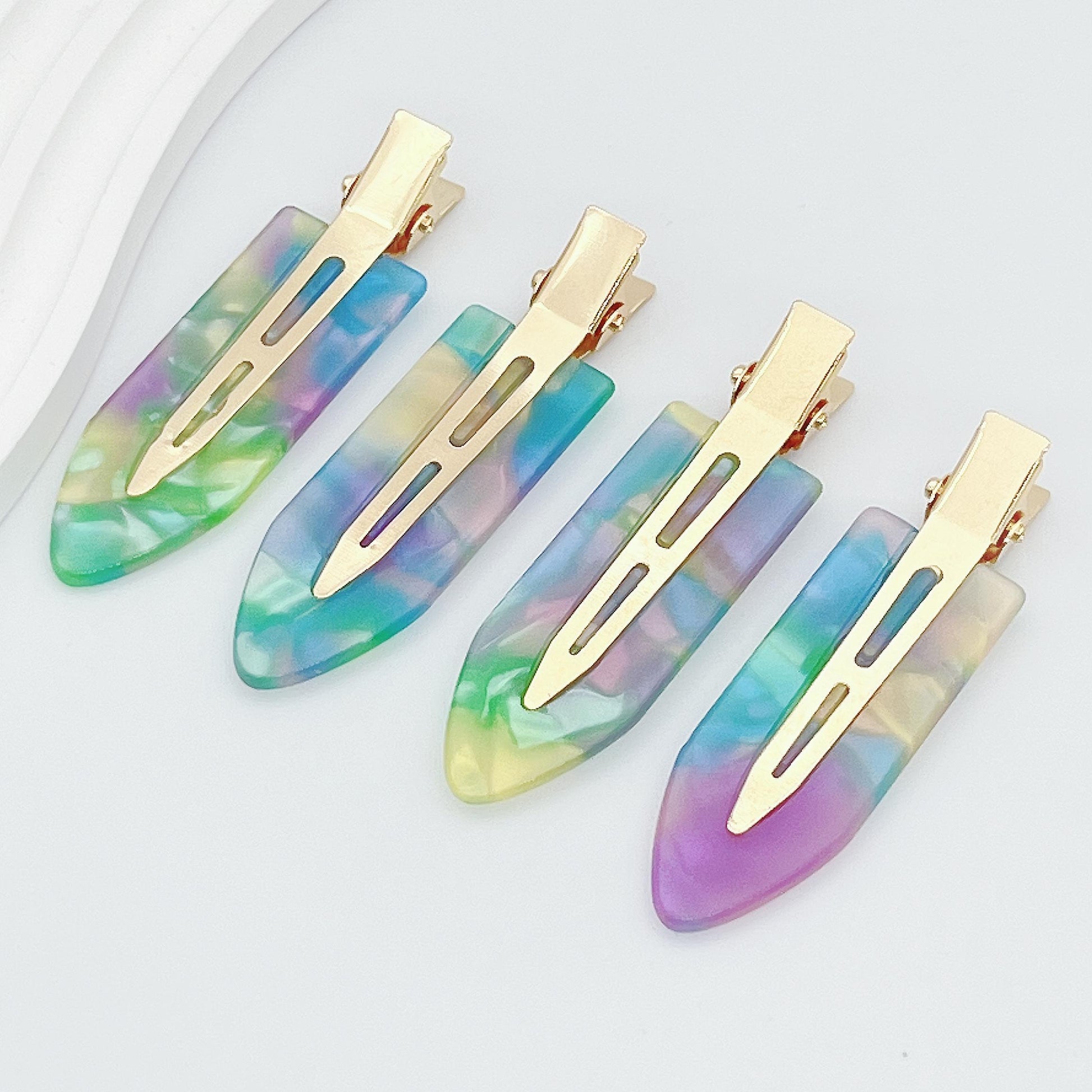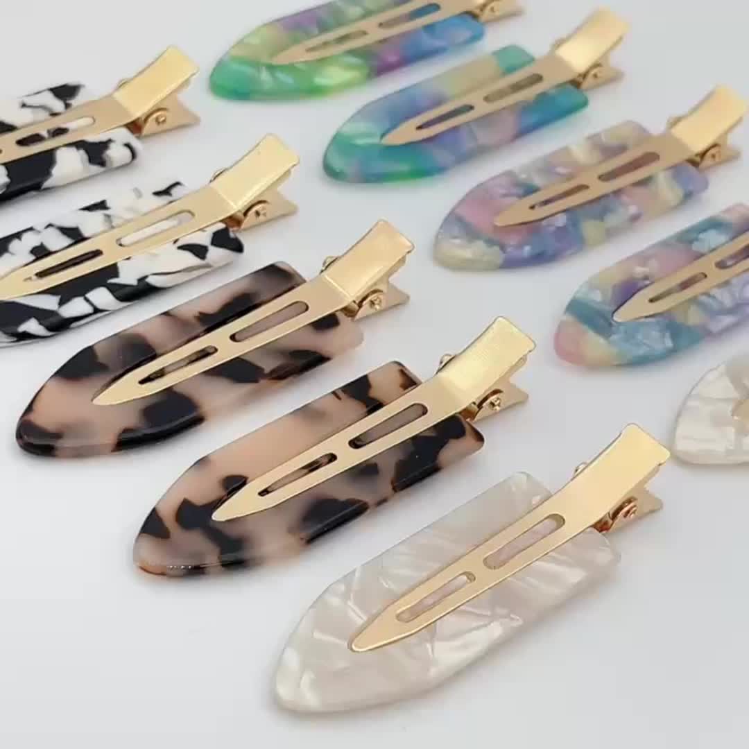 4pcs Hair Clip Styling without Bending, Acrylic Resin Flat Clip, No Crease Curling Small Needle, Seamless Bangs Hair Clip Tool for Makeup - Women's and Girls' Hair Accessories, Leopard Print White and Black