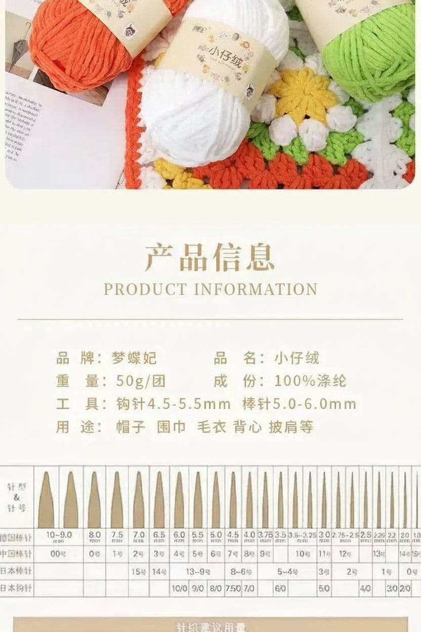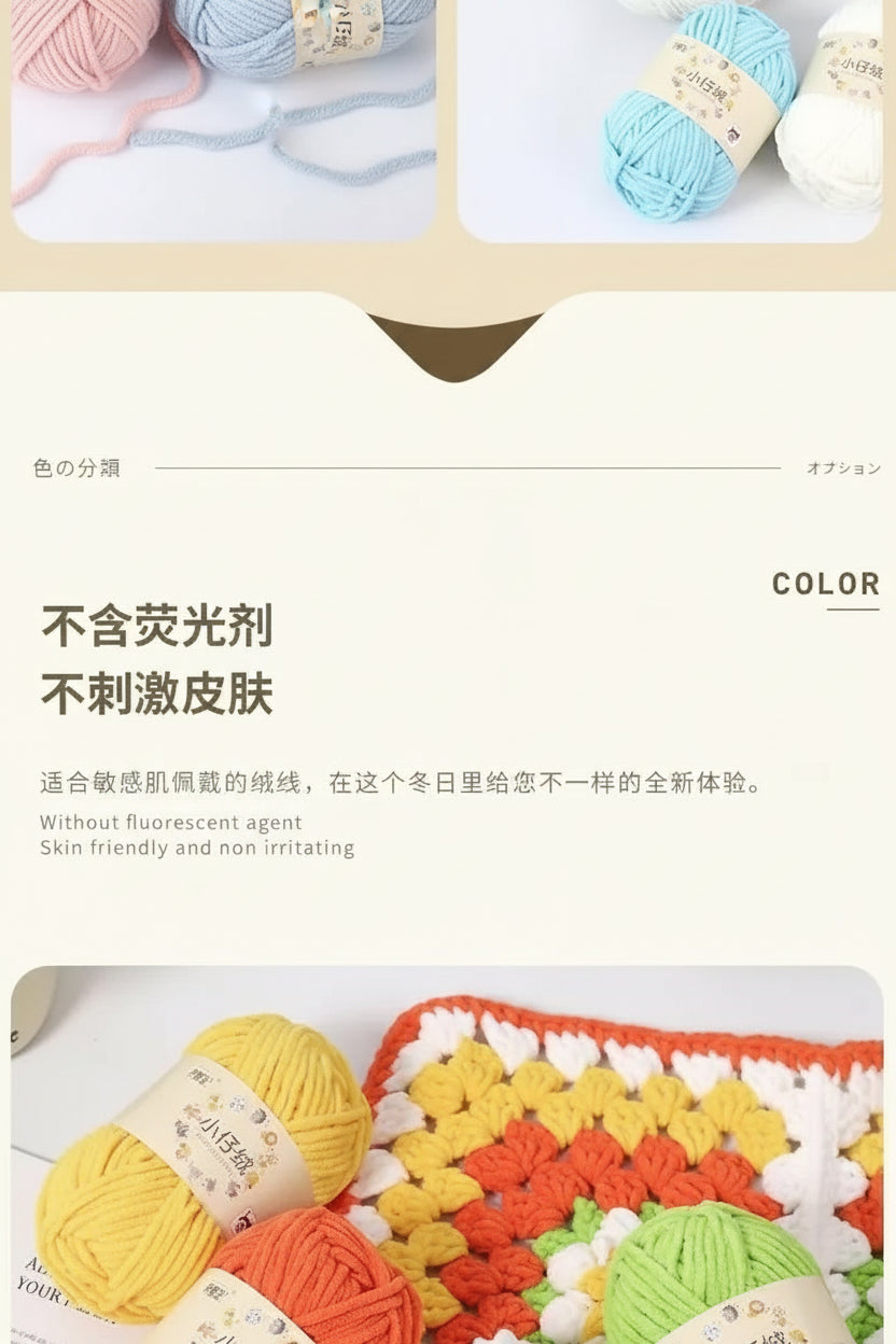 50g Thick Velvet Yarn, Handmade DIY Knitting Yarn, Wool Thread, Baby Scarf and Hat, Soft Chenille Yarn for Knitting