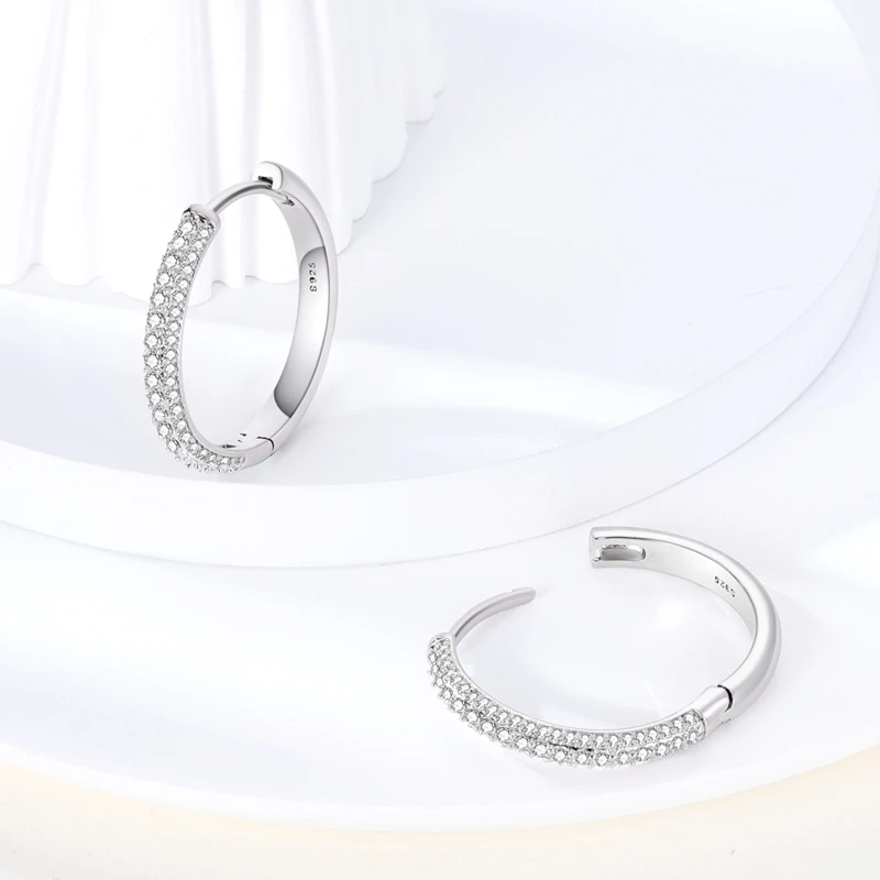 925 Sterling Silver Earrings Women Double Side Pave White Zirconia Large Hoop Earring For Anniversary Wedding Jewelry Gifts