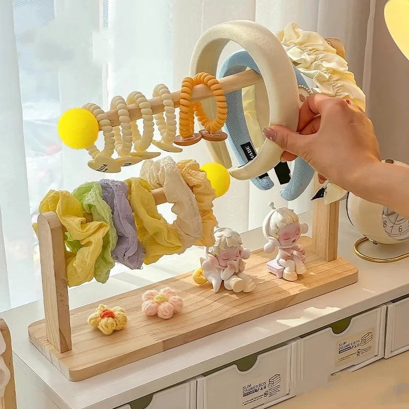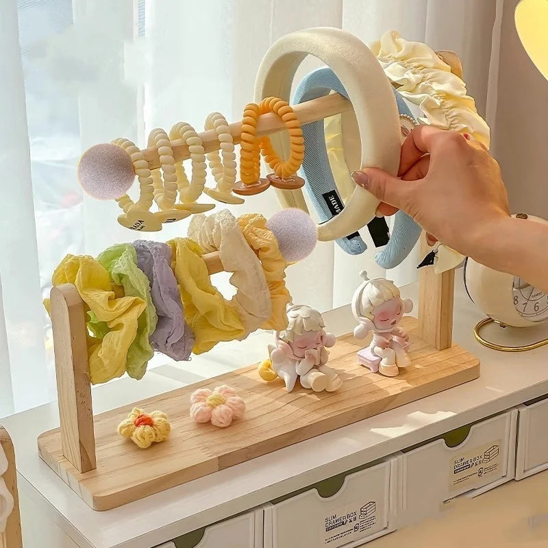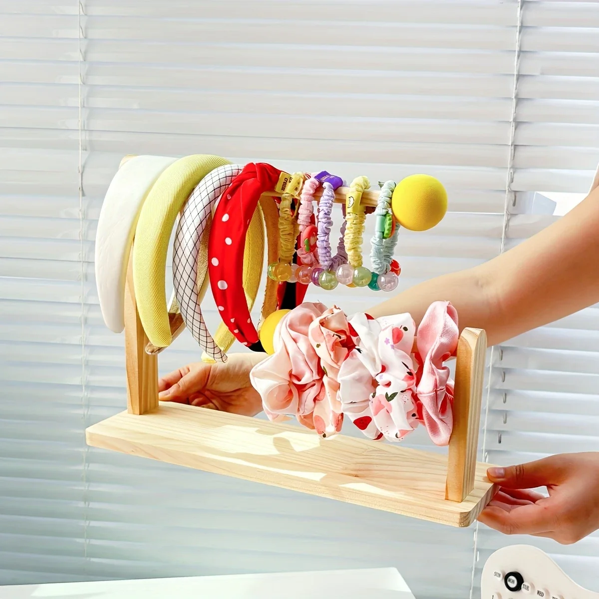 double-layer Scrunchie Holder, Wood Hair Tie Holder Organizer,Bracelet Holder,Hair Tie Storage,Female Headband Display Stand