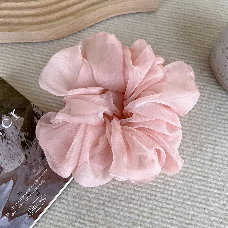 Elegant Chiffon Scrunchie for Women - Soft Organza Hair Tie Korean Style Aesthetic Hair Accessories Large Ruffled Hair Loop