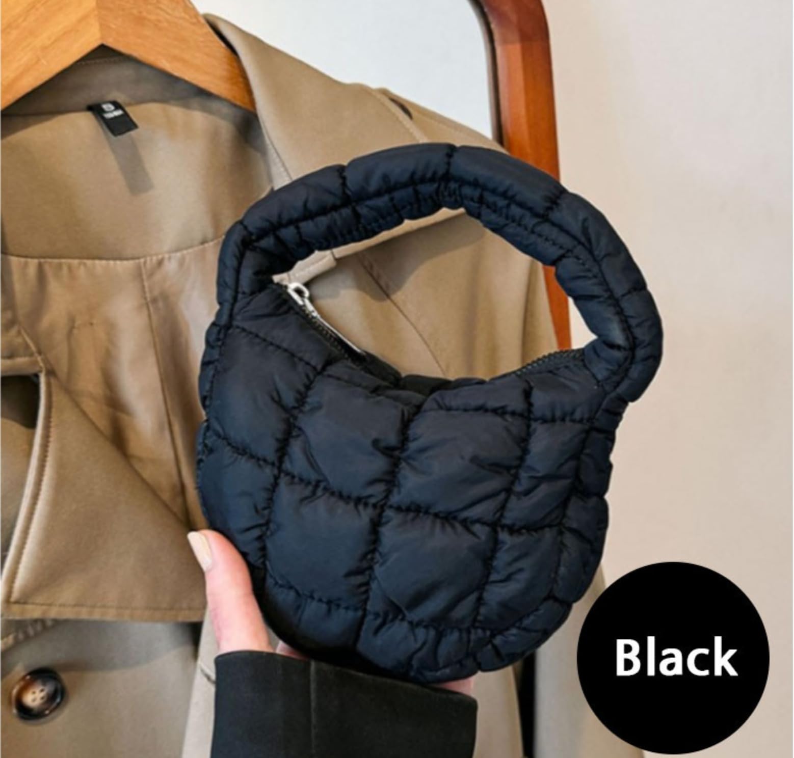 Generic Quilted Mini Tote Bag, Nylon Shoulder Handbag with Zipper, Multiple Colors, Lightweight Casual Style
