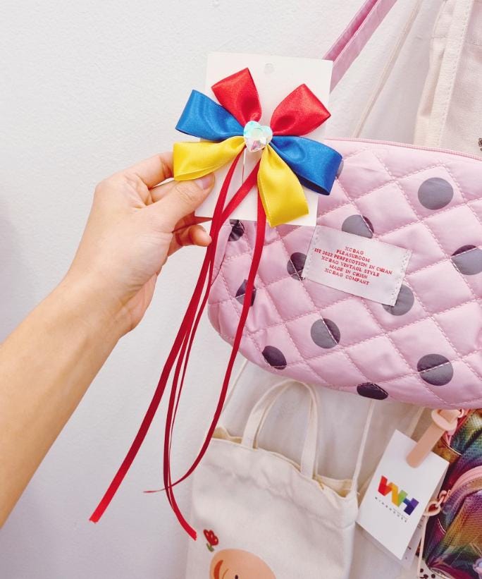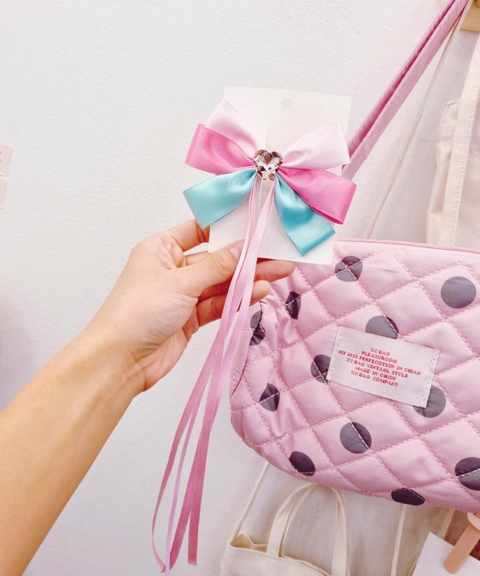 Fulfill your girl's princess dream with this simple yet classy long tail bow pin! Clip onto your bag, and it can also become a bag charm ;)