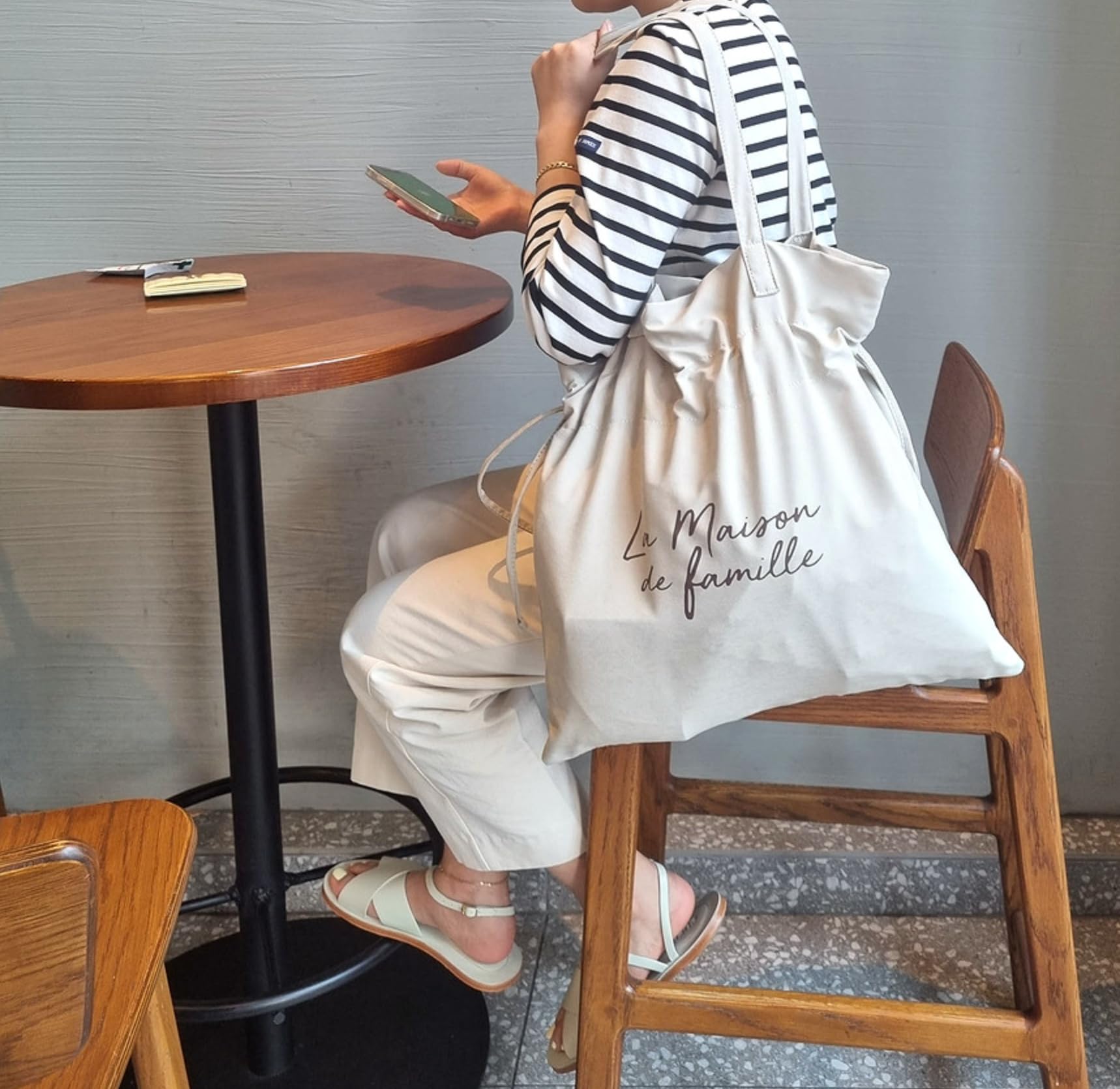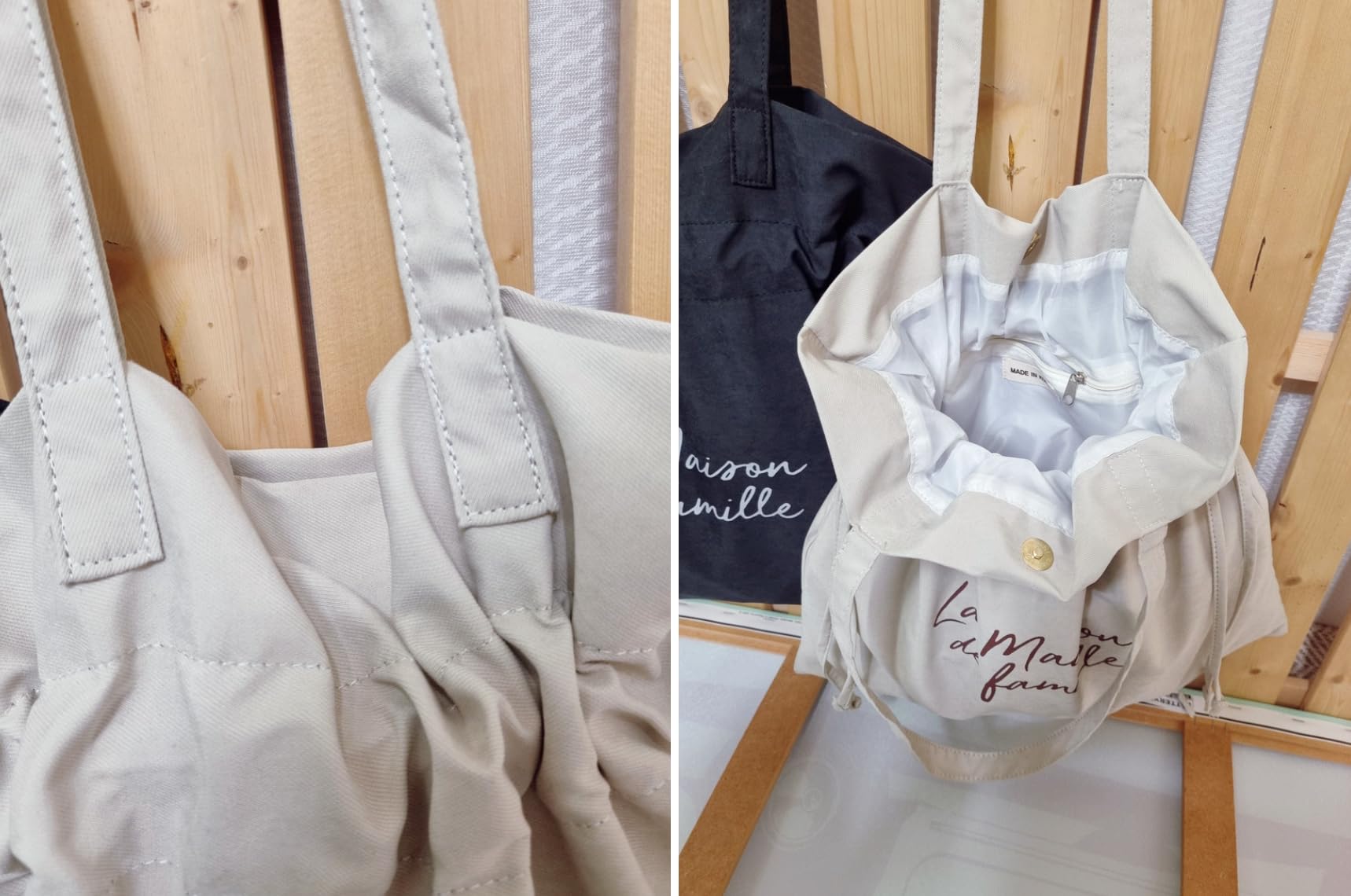 Introducing the La Maison de Famille Korean drawstring shoulder bag, a perfect blend of style and functionality. This versatile bag features a soft suede texture and flexible fabric construction that drapes naturally when worn. The thoughtfully designed dimensions of 14.6 inches in length, 14.2 inches in height, and 3.5 inches in width provide ample storage space, while the 13.8-inch shoulder strap ensures comfortable carrying. Available in classic ivory and black options, this bag includes practical features like adjustable drawstrings for secure closure and an interior zippered pocket for organizing essentials. The polyester-lined interior adds structure and durability to the design. The bag's lightweight and supple fabric composition makes it gentle against clothing while maintaining its sophisticated appearance. This Korean-crafted shoulder bag seamlessly combines casual elegance with practical design, making it suitable for both daily use and special occasions.