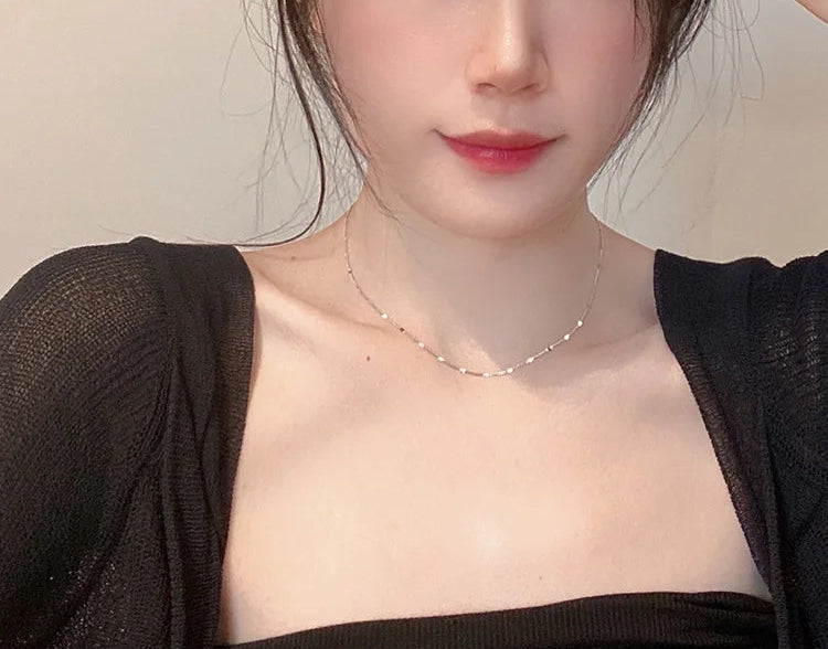 This minimalist sideways chain necklace is crafted from genuine 925 sterling silver and designed with a clean, elegant cold-wind aesthetic. The dainty link chain rests beautifully along the collarbone, creating a subtle yet refined shine suitable for everyday outfits or special occasions.