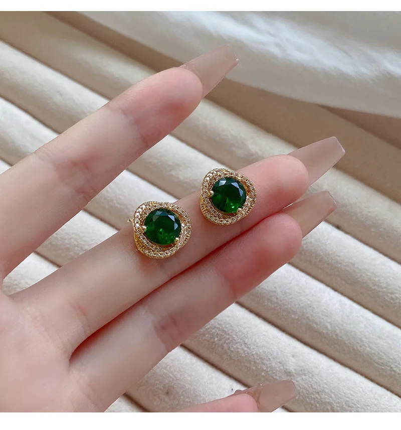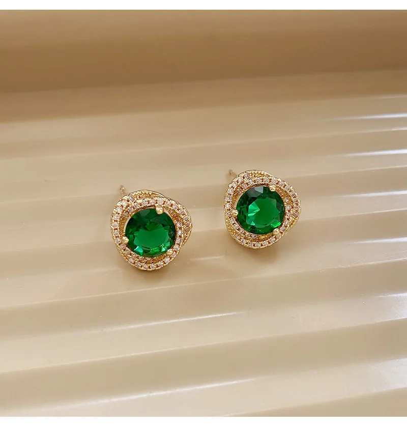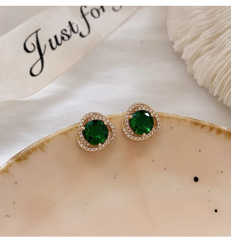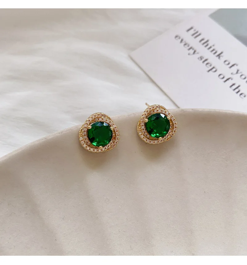 Classic Emerald Green Crystal Stud Earrings – Vintage Halo Round Design