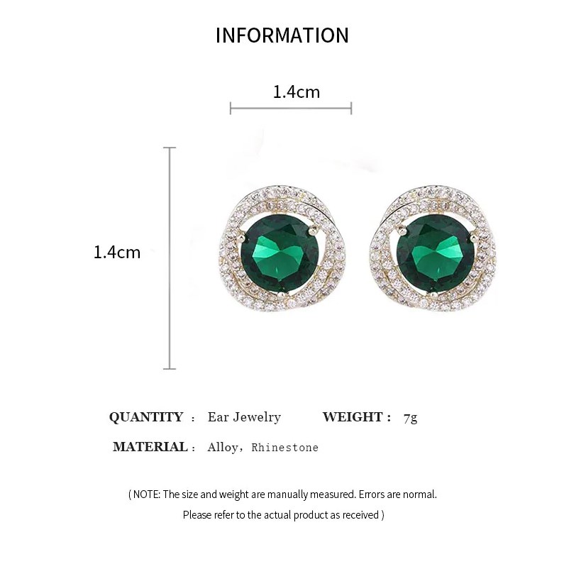 Elevate your everyday look with these Elegant Emerald Halo Stud Earrings, featuring a rich emerald-green center stone surrounded by a delicate halo of sparkling rhinestones.